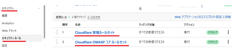 ② Cloudflare OWASP コア ルールセット (Cloudflare OWASP Core Ruleset)
