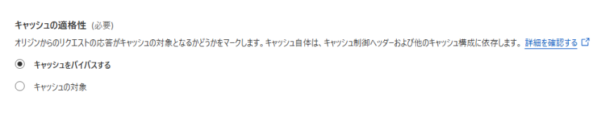 - キャッシュ適格性: [キャッシュをバイパス] を選択